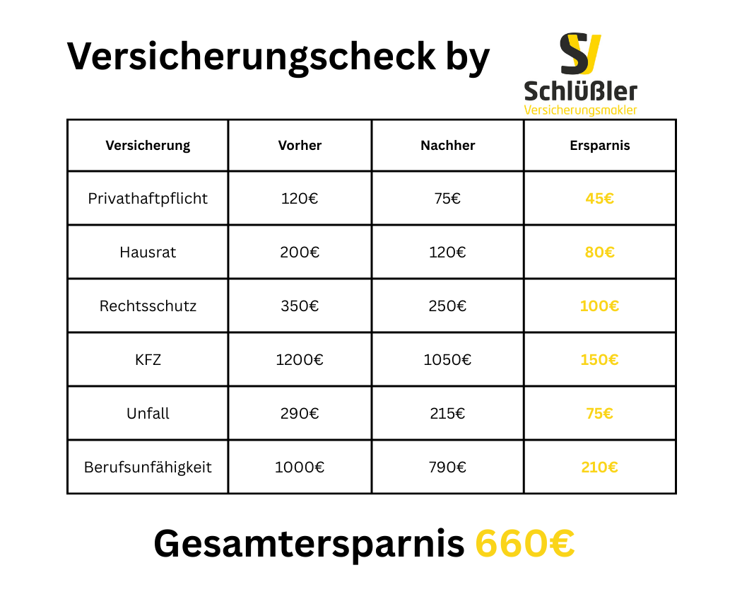 Mit meinem kostenfreien Versicherungscheck analysiere ich Ihre bestehenden Verträge und vergleiche diese mit aktuellen, leistungsstarken Tarifen am Markt.